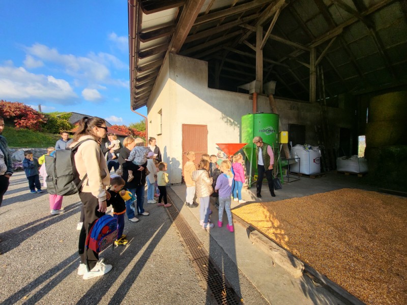 Kostanjev piknik smo obogatili z ogledom kmetije Senekovič. Z velikim veseljem smo se sprehodili po kmetiji, si ogledali živali, delovne stroje ter spoznali različna dela, ki jih opravljajo. Gospa Senekovič nas je ob koncu pogostila, mi se pa zahvalili za prijazno vodenje in poučno doživetje.
