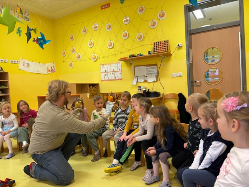 Gostovanje kustosov muzeja NO Maribor: delavnica “Igre naših (pra)babic in (pra)dedkov” v oddelkih oblački in sončki.