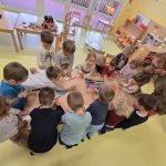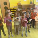 V tednu slovenske hrane smo se posvetili spoznavanju naše kulinarike in čebelarske tradicije. Obiskala nas je čebelarka, ki je otrokom predstavila svoje delo in izdelke. Iz odpadnih materialov so otroci izdelovali čebele in skupaj ustvarili tudi plakat, ki je ponazarjal pomen čebel. Ob tradicionalnem slovenskem zajtrku so otroci imeli posebne pogrinjke in uživali ob zdravi hrani.