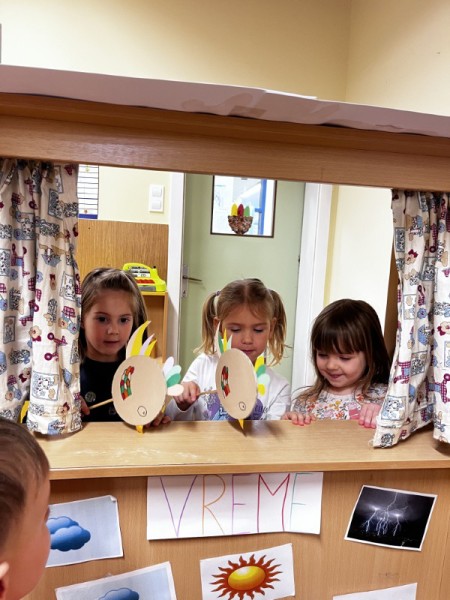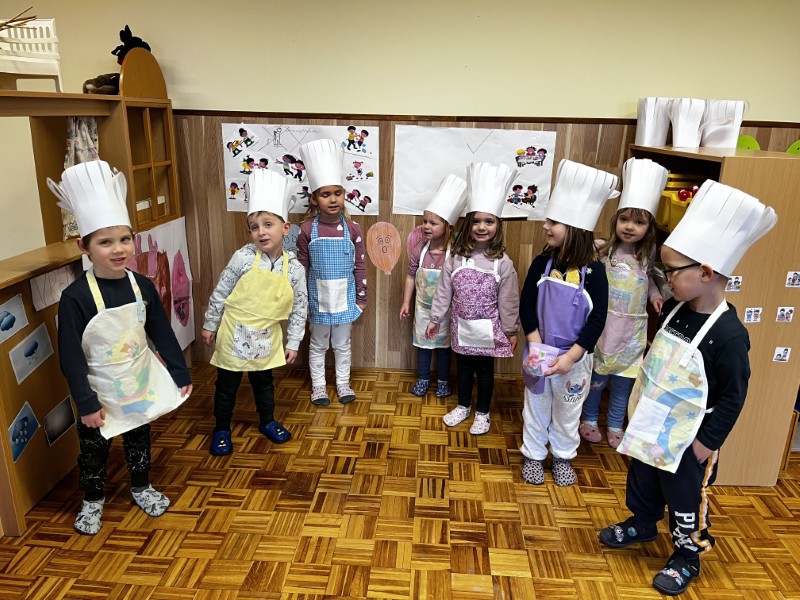 Mesec februar smo preživeli v različnih pustnih kostumih in igrali smo lutkovno igro na temo Zgodbožerčkov: Kralj Srečko ali o kuharjevi kapi.