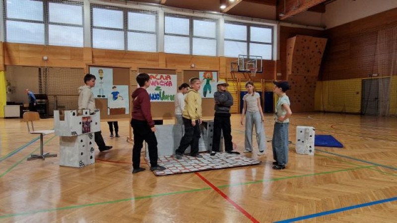 Izvedla je dva nastopa, za mlajše in starejše učence. Tretješolci so pod mentorstvom Božene Arnejčič odigrali tri kratke dramske igre po zgodbah Kakšno drevo zraste iz mačka, Delo je lahko veselo, Poskusna država.